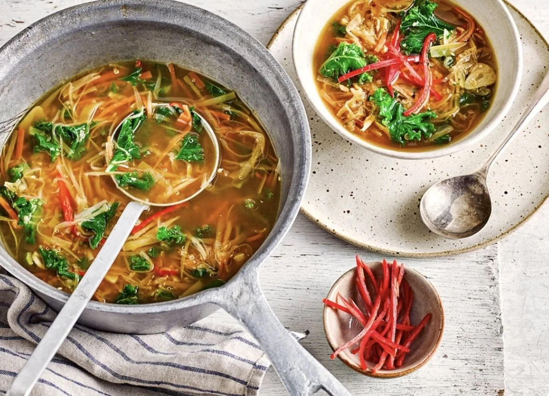 Shred ginger, leeks and carrots into this umami-rich soup and top up with quinoa and kale for a nourishing meal